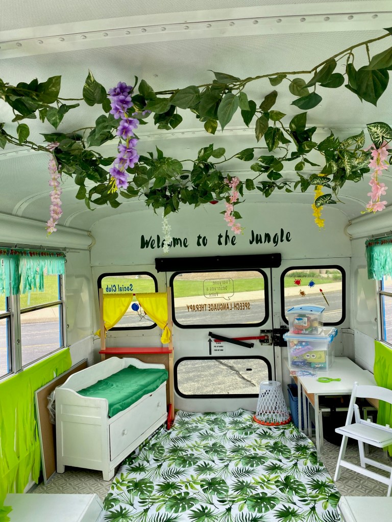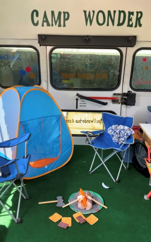 Aside from the elements that appeal to the parents of Mrs. O’s students, the real critics who matter are the kiddos themselves. With most therapeutic services, the benefits really only go as far as the clients are willing to take them. Getting to climb aboard a big blue bus has proven to be an excellent motivator for Mrs. O’s students. Between all of the fun games and toys that the kids can be sure the WonderBus is stocked with, the kids are excited each week to see how Mrs. O has transformed the space. Between jungle, superhero, camping, haunted house, golf, and now a gingerbread house theme, there is never a dull speech therapy session on the WonderBus.