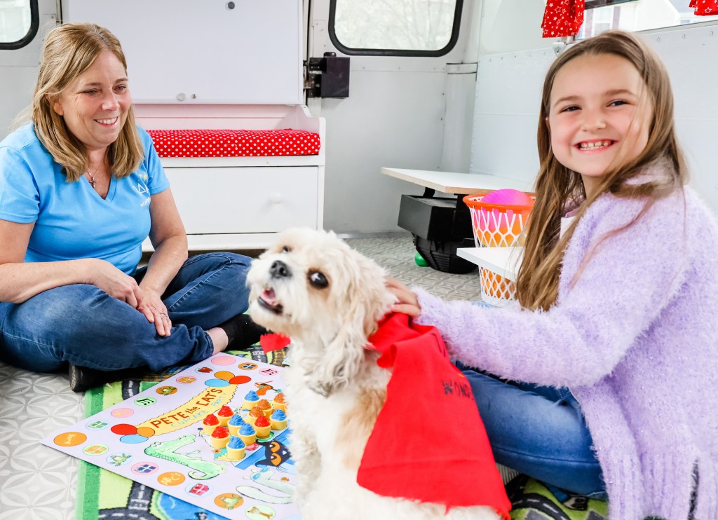 Sophie is the Wonderbus mascot. Sophie is sweet and loving. She adores children and is the perfect companion on the bus.
